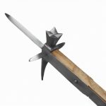 The Venetian War Hammer gained a great deal on the medieval battlefield, along with other polearms. Highlighted by a four pronged, steel head with spikes, It has a wooden haft, handle cap, and langets. With excellent craftsmanship and authentic design, this is a powerful piece sure to add a lot to any collection.