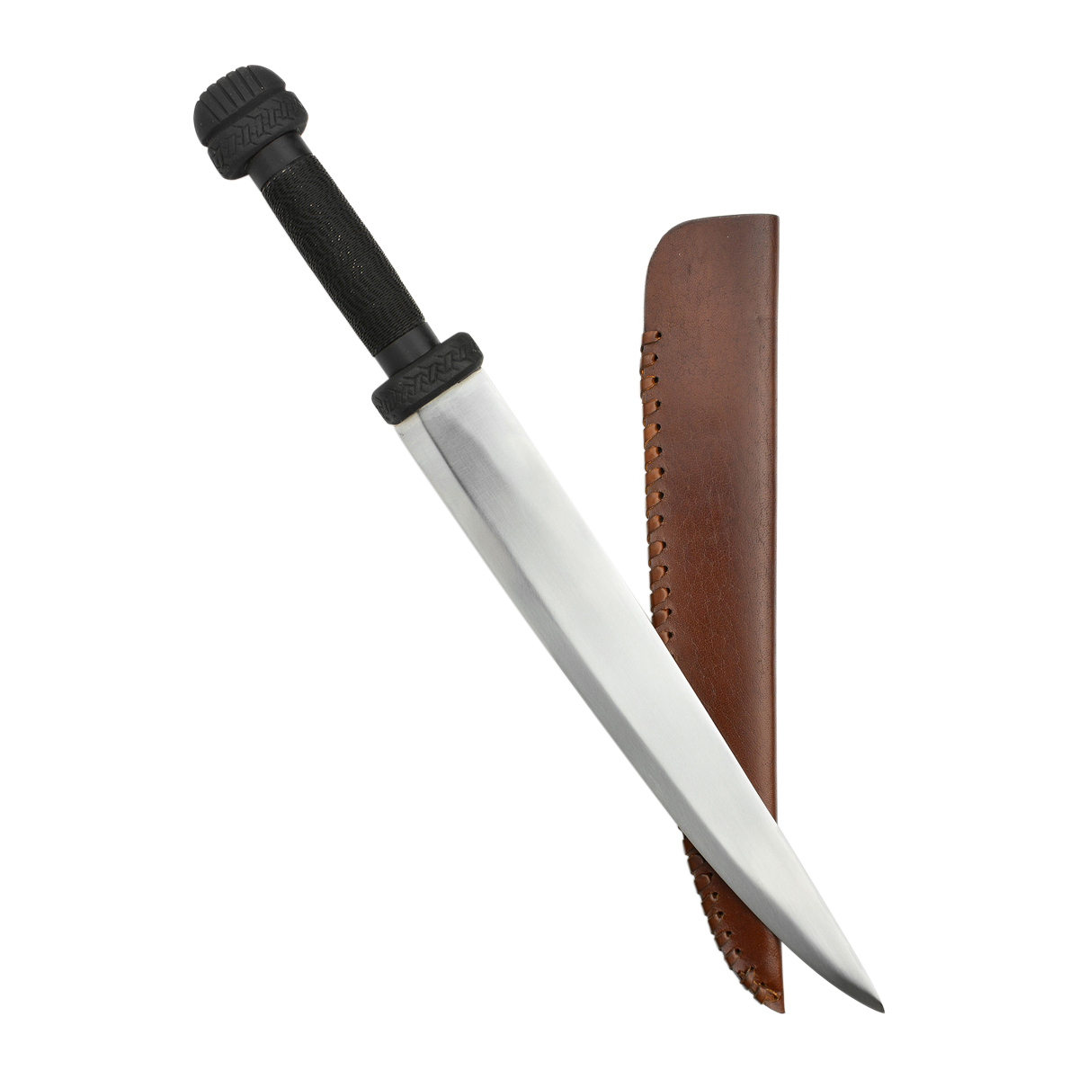 Universally carried in Northern Europe by the Saxons, Angles, Vikings, and Germanic tribes comes this authentic reproduction of the Viking Dagger. Crafted from carbon steel, this knife is full of detail and is accompanied by a leather scabbard. Great for costumes, collections, and reenactments.