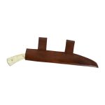 This large Viking seax has a composite grip of polished bone plates that are brass riveted to the thick blade tang. The blade of the seax is forged from EN45 high carbon steel. The bolster is brass and the pommel cap is steel. Included is a durable, stitched leather sheath with belt loops.