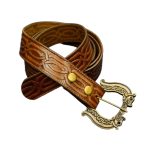 This Viking Serpent belt is crafted from quality vegetable tanned leather which is both thick and durable. The belt strap features Viking knotwork throughout and the large belt buckle is cast from solid brass with an antiqued finish.