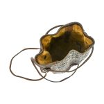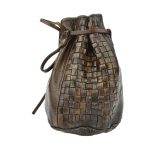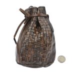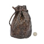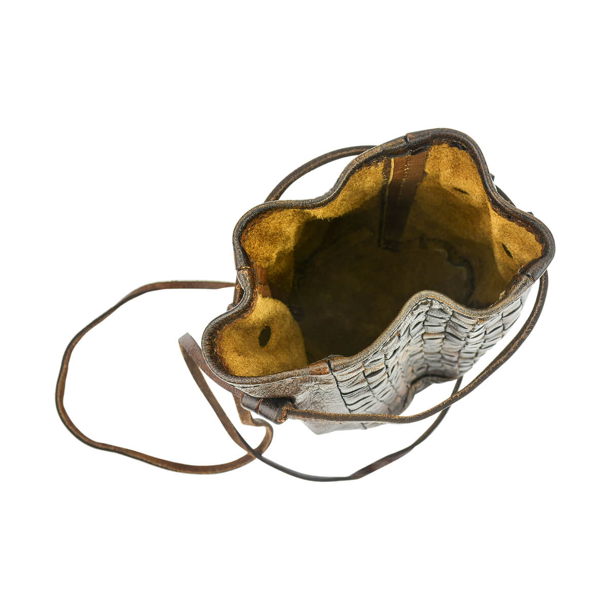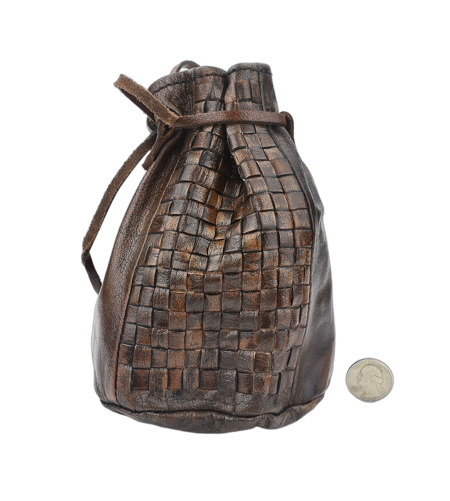 This Viking Belt Coin Pouch is finely crafted from high quality vegetable tanned leather and its front panel is a visually fetching woven latticework of leather banding. Tight and precise stitching constructs the pouch and it is drawn closed with an integrated leather cord.