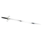 This replica of the Wallace Sword has a blade crafted from high carbon steel. The hilt is steel and the wooden grip is wrapped in leather. The sword ships disassembled to minimize the shipping costs of this large greatsword.