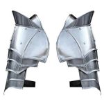 The Steel Warrior Pauldron Medieval Shoulder Armor Set offers the best of the best in protection and craftsmanship. Featuring 18 gauge steel construction, this set is comprised of 6 sections that overlap one another and are riveted together. Each section has soft leather and comes with flexibility for ease of movement. Also included is a special guard at the top which protects the neck and head from the sides. To ensure a secure fit, leather straps do the job nicely. With full coverage and authentic design, this pauldron is perfect for costumes and re-enactments.
