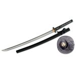 The Katana of the Wind and Thunder set by Paul Chen / Hanwei is designed specifically for the martial artist who needs a sword to meet the demands of heavy target cutting. The katana features a heavier and thicker blade with traditional furniture and fittings. The Raiden tsuba is crafted in blackened stainless steel and the fuchi and kashira feature a Tomoe motif. The tsuka is wrapped in genuine same (ray skin) and the tsuka-ito is premium Japanese black cotton. The saya is finished in a traditional black laquer with a black cotton sageo. The Katana is an excellent choice for batto-jutsu practitioners. See Hanwei models SH5024 for the companion short sword, the Wind and Thunder Wakizashi.