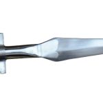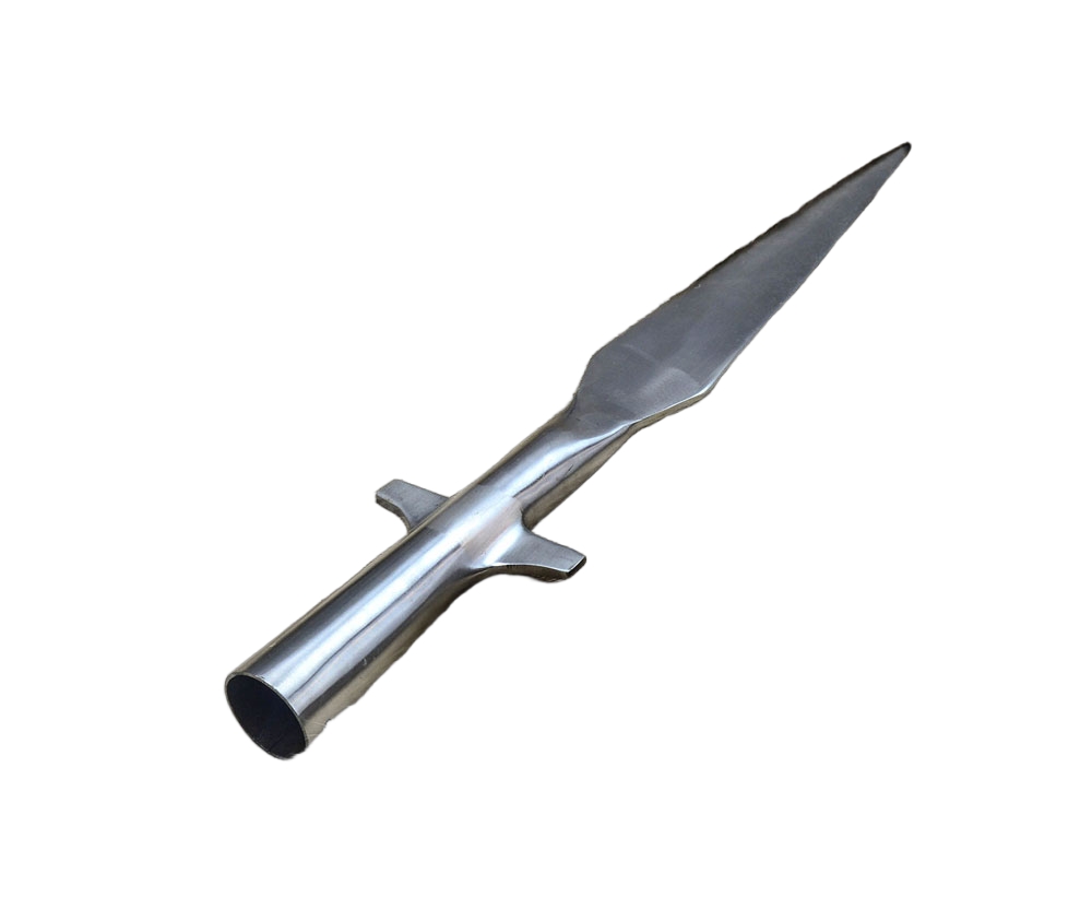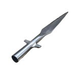 This Winged Spearhead is crafted from high carbon steel. Two pre-drilled holes allow it to be secured to a wooden spear pole with screws or rivets.