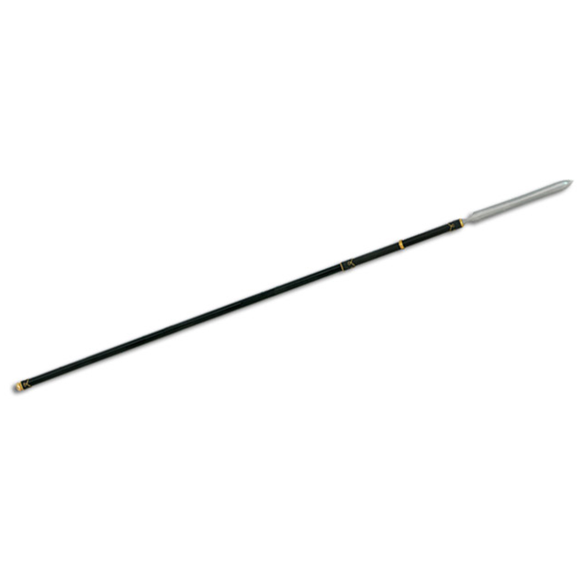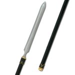 The Yari by Paul Chen was an essential battlefield weapon of the Samurai in feudal Japan and took great skill to use and maneuver, due to its length and size. This piece is modeled after the su-yari or straight-spear design. The blade is forged in T10 high-carbon steel and is triangulated and double-edged with a deep fuller on the flat side of the blade. Differential tempering results in a clear hamon on each edge. The tangs are long to absorb the shock of a blow. The shaft (ebu) is finished in a textured black and has a flattened side at the bottom section for blade orientation. The one-piece staff construction reinforces the durability of the spear. This version features a long (16-3/4) blade. See model SH2312 for our short-bladed Yari.