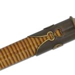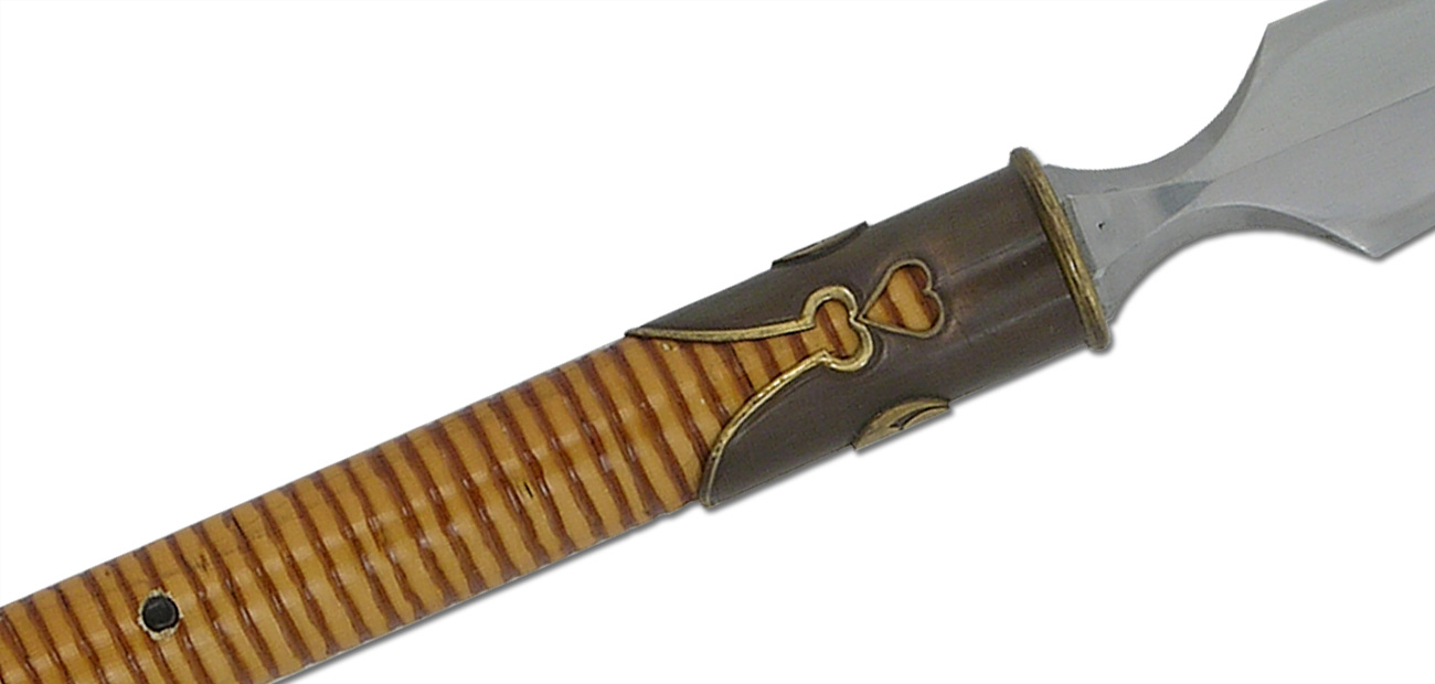 The Yari was an essential battlefield weapon of the Samurai in feudal Japan and took great skill to use and maneuver, due to its length and size. This piece is modeled after the su-yari or straight-spear design. The blade from Hanwei is forged in T10 high-carbon steel and is triangulated and double-edged with a deep fuller on the flat side of the blade. Differential tempering results in a clear hamon on each edge. The tangs are long to absorb the shock of a blow. The shaft (ebu) is finished in a deep black lacquer and has a flattened side at the bottom section for blade orientation. The one-piece staff construction reinforces the durability of the spear. This version features a shorter (11″) blade than the Hanwei SH2152 Yari, making for a faster weapon.It also features a rattan wrapped section at the upper grip, making this a visually stunning piece.