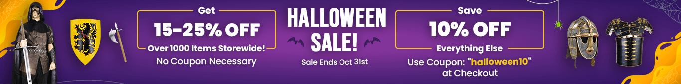 Happy Halloween! For the entire month of October we're running our Halloween Sale! Get an instant 10% off your order with the code "halloween10". Enter the code at checkout to receive the discount on all eligible products. We also have over 1000 items specially marked down on special sale 15-25% off normal prices. These products are already marked down and no coupon is necessary. Get your unique and authentic looking costume at great prices!